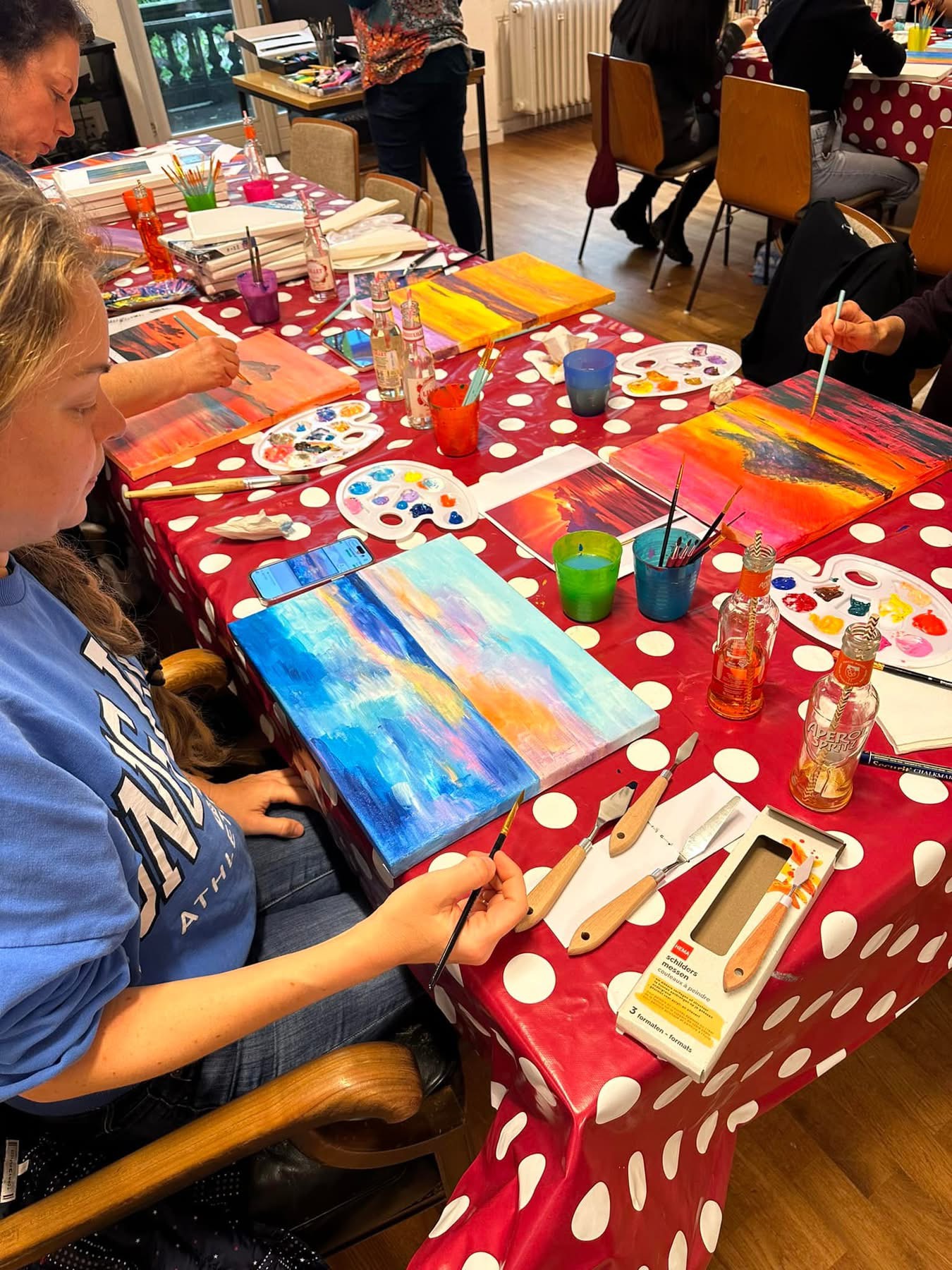 • All art materials (canvas, paints, stencils, brushes — everything you need)
